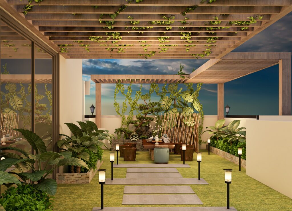 • Seating Areas: Comfortable, shaded seating zones with benches, chairs, or hammocks that invite relaxation and socialization.