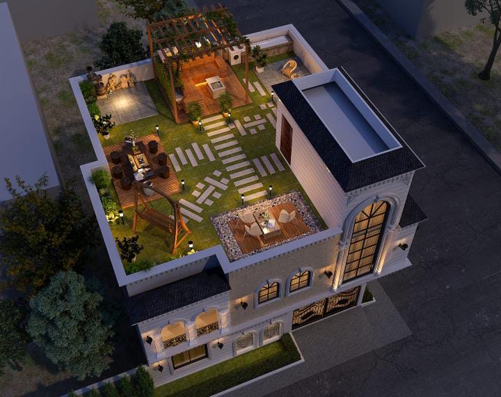 • Ambient and Accent Lighting: Strategically placed lighting adds ambiance and highlights focal points such as trees, sculptures, or architectural elements.